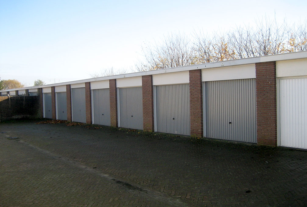 11 Garageboxen van ca 400 m2 geheel gerenoveerd en voorzien van nieuwe houten deuren, daken en metselwerk.